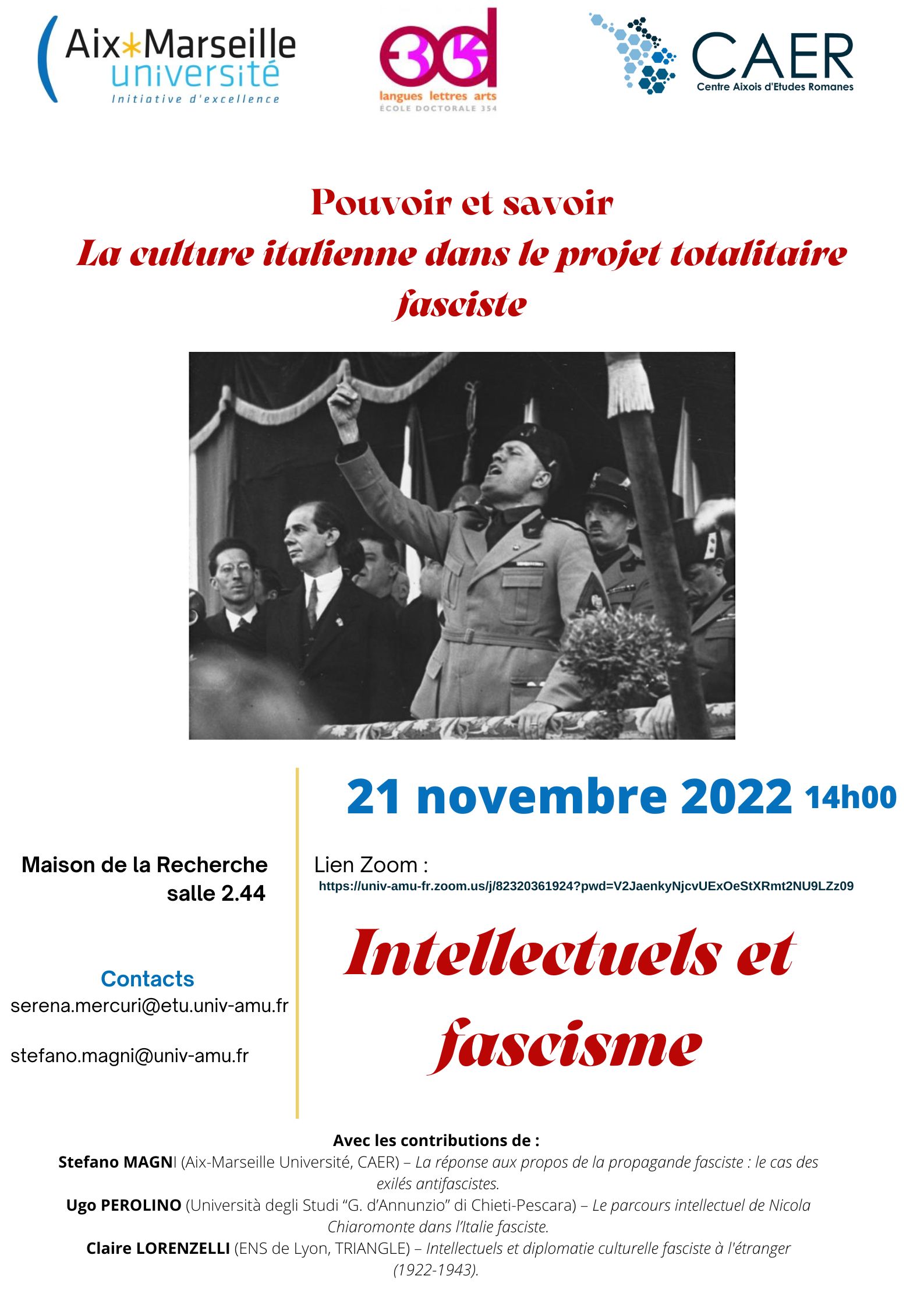 Lien Zoom : https://univ-amu-fr.zoom.us/j/82320361924?pwd=V2JaenkyNjcvUExOeStXRmt2NU9LZz09