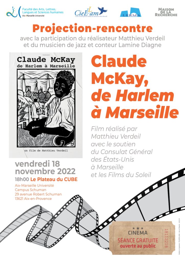La journée se clôturera avec la projection à 18h, à la salle du Plateau, au Cube, d’un documentaire sur McKay (2020) en présence du réalisateur Matthieu Verdeil et avec la participation du musicien de jazz et conteur Lamine Diagne.