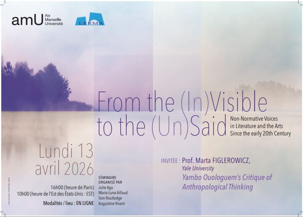 Le séminaire doctoral « From the (In)Visible to the (Un)Said: Non-Normative Voices in Literature and the Arts Since the early 20th Century » porté par les membres doctorant·e·s de l’équipe de recherche Women and the F-Word, affiliée au LERMA, organise sa troisième séance en ligne le lundi 13 avril prochain à 16h00 avec Marta Figlerowicz, professeure en littérature comparée à Yale University.