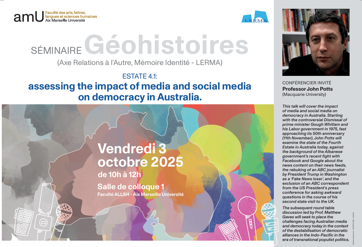 This presentation considers the relationship between media and democracy in Australia with reference to three themes: the Australian constitutional crisis of 1975; the concentration of media ownership favouring Murdoch’s News Corp; and the rise of social media as the main source of news in a ‘post-truth’ media environment.