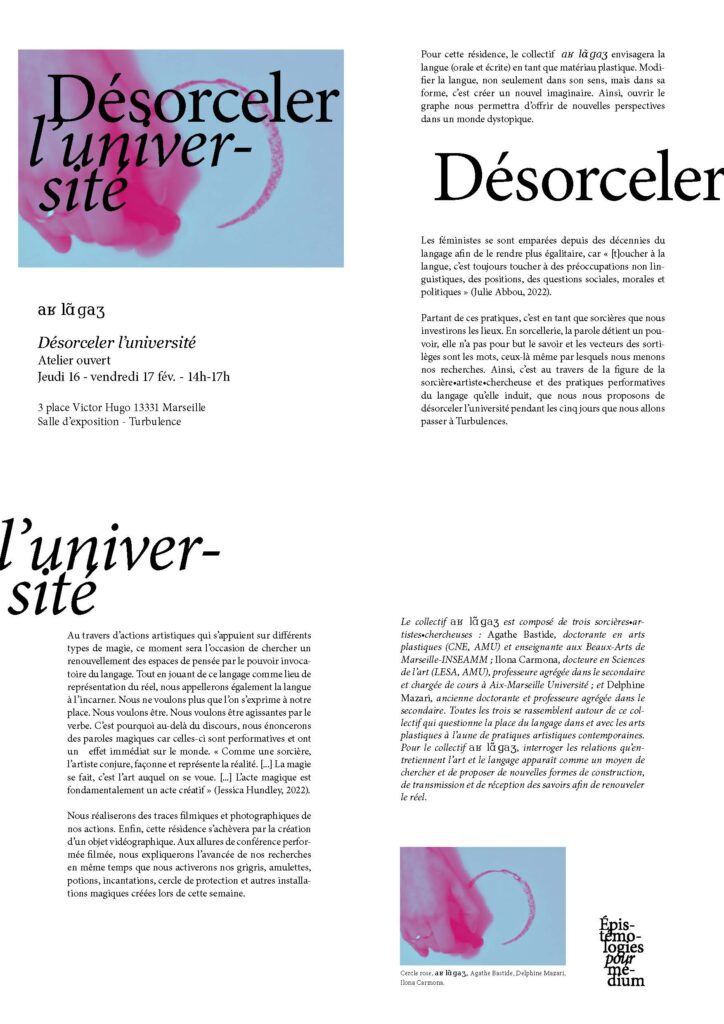 Pendant une semaine, le collectif art langage investira Turbulence pour « Désorceler l’université ».