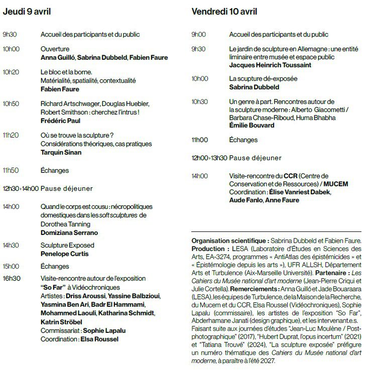 Les journées d’études intitulées « La sculpture exposée », se tiendront les 9 et 10 avril 2026 à Turbulence –Bâtiment 14, sur le Campus Centre – site Saint-Charles d’Aix-Marseille Université.