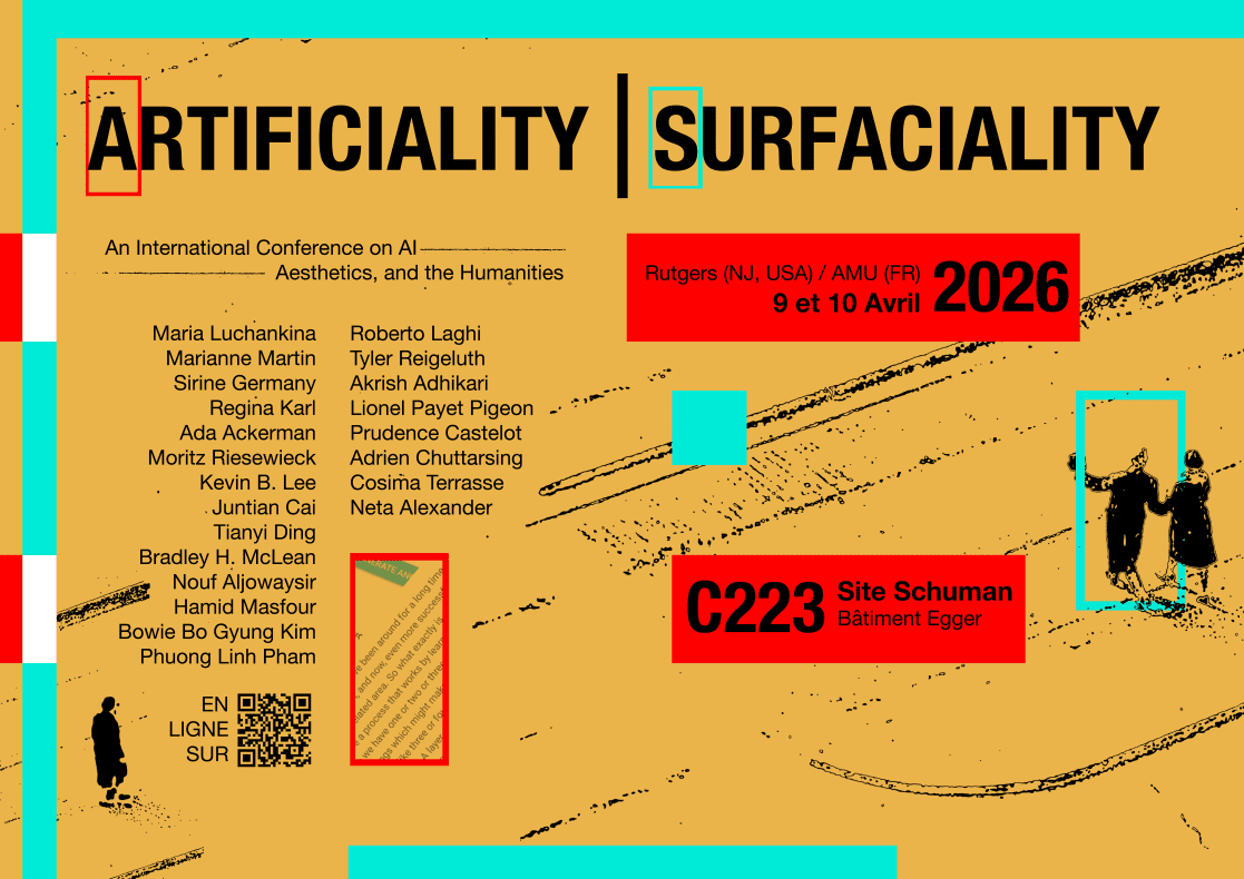 Faculté ALLSH_Campus Schuman_Bâtiment EGGER_Salle C223 (2e étage_couloir violet) Nous vous invitons à nous rejoindre les 9 et 10 avril, à « Artificiality | Surfaciality », une conférence internationale organisée conjointement par le Département de Français de l’Université Rutgers (New Brunswick, USA) et le laboratoire du LESA d'Aix-Marseille Université (France), consacrée aux enjeux de l’intelligence artificielle, […]