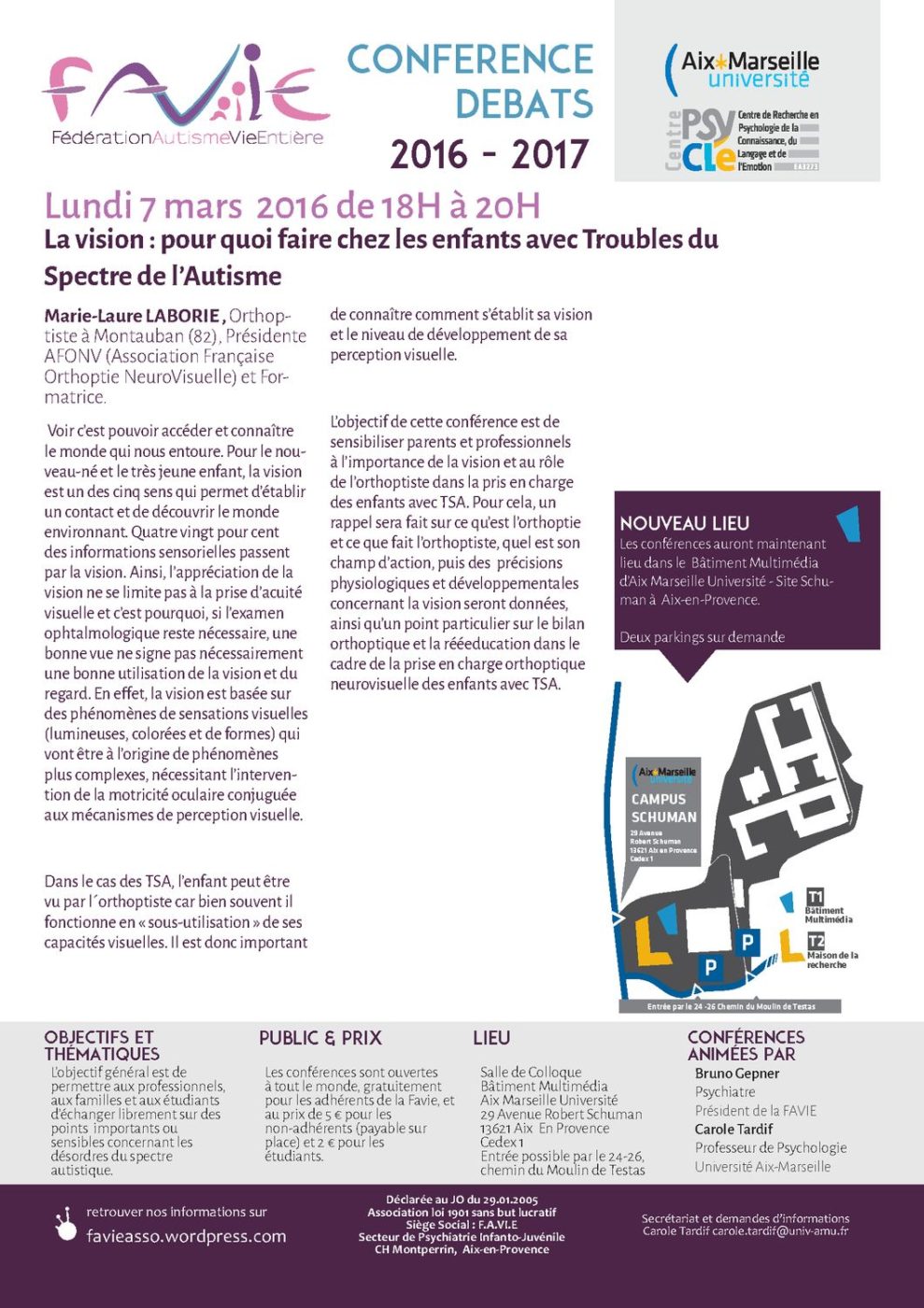 Jeudi 17 mars 2016, 16h00-18h00. Faculté des Sciences, Marseille Saint-Charles, salle du Ceperc, bâtiment 5, escalier B, septième étage, couloir de droite. |