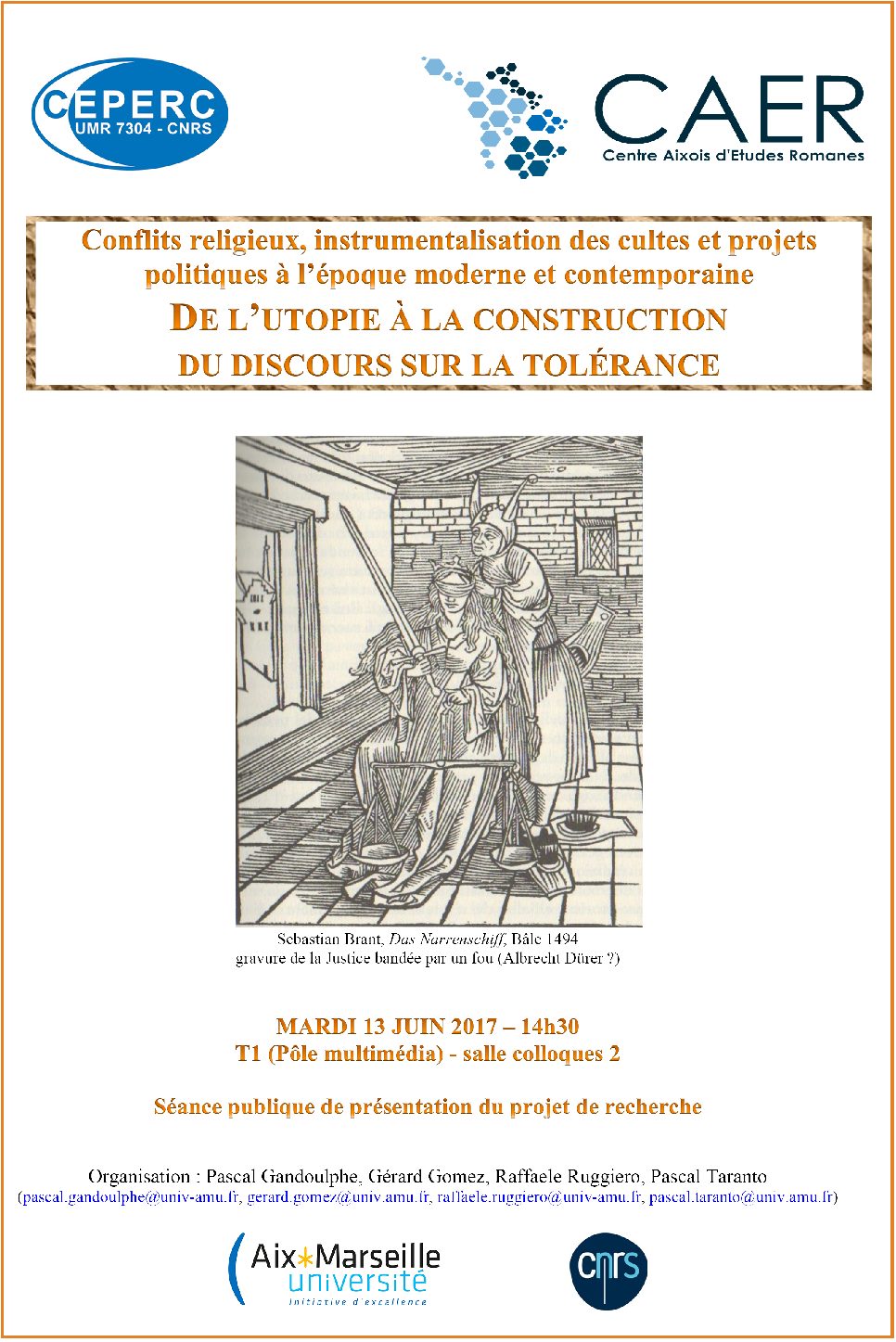 Lundi 5 juin 2017, 17h30-20h30. Faculté ALLSH, 29 av. R. Schuman, Aix-en-Provence. Maison de la Recherche. Salle 2.41. |
