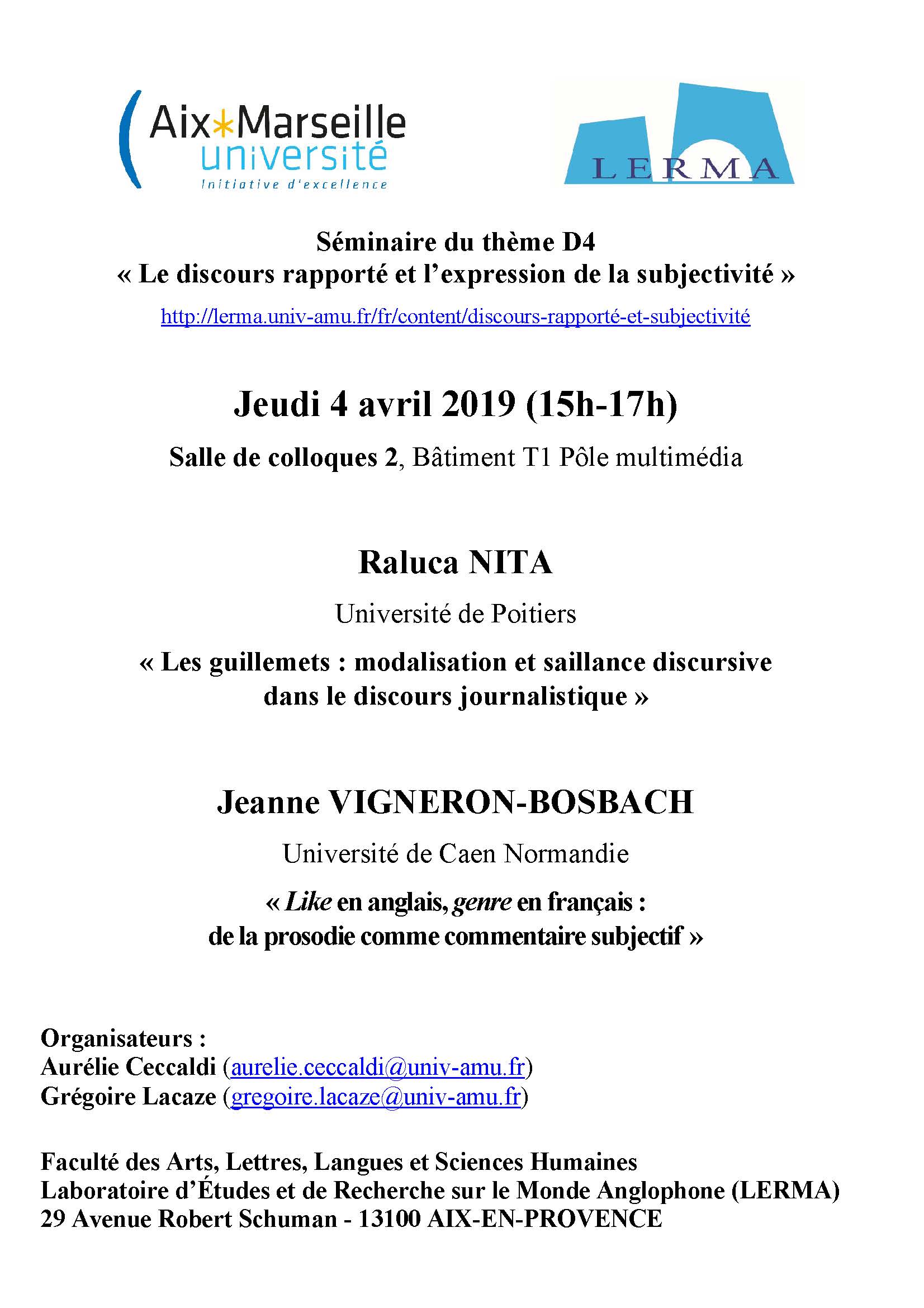 (*) sous réserve d'autorisation de soutenance Titre : Scriptor in fabula : essai de conceptualisation d'une pratique d'écriture créative Jury Mme Violaine HOUDART-MEROT, Professeure des Universités, Université Cergy-Pontoise, Rapporteure du jury Mme Marie JOQUEVIEL-BOURJEA, Maître de Conférences HDR, Université Montpellier3, Rapporteure du jury M. Patrick GOUJON, Personnalité extérieure, ETS d'enseignement Sup Libre Centre de Sèvres, […]
