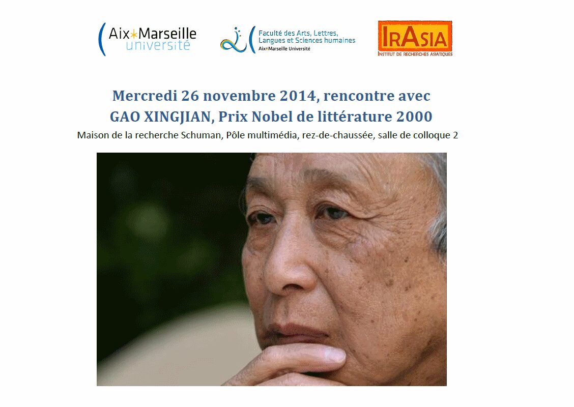 26 novembre 2014 : Rencontre avec Gao Xingjian, prix Nobel de littérature, et projection de son film Le Deuil de la beauté (resp. Noël Dutrait) https://vimeo.com/138839446