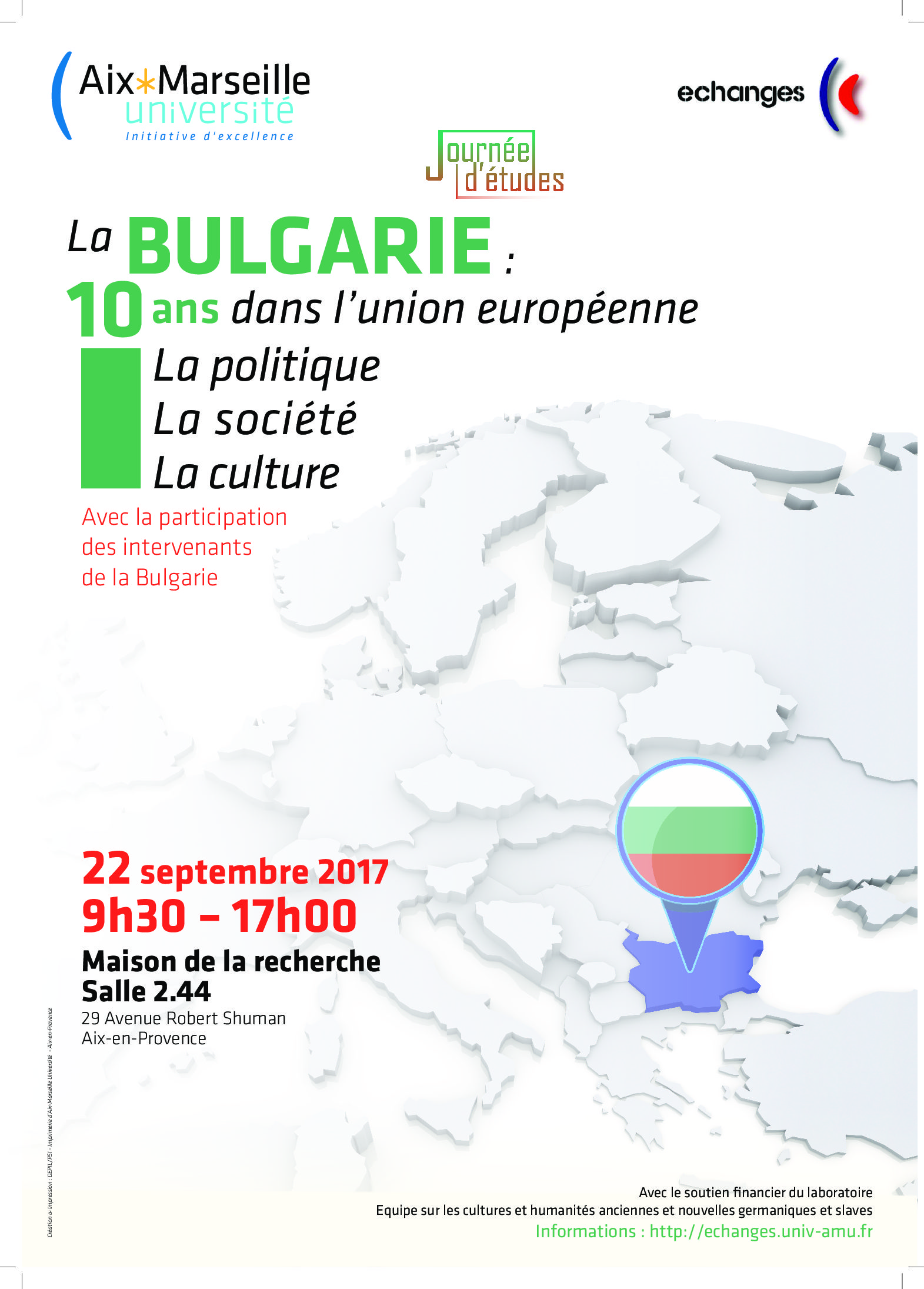 Vendredi 22 septembre 2017, 9h30-17h00. Faculté ALLSH, 29 av. R. Schuman, Aix-en-Provence. Maison de la Recherche T2, salle 2.44.