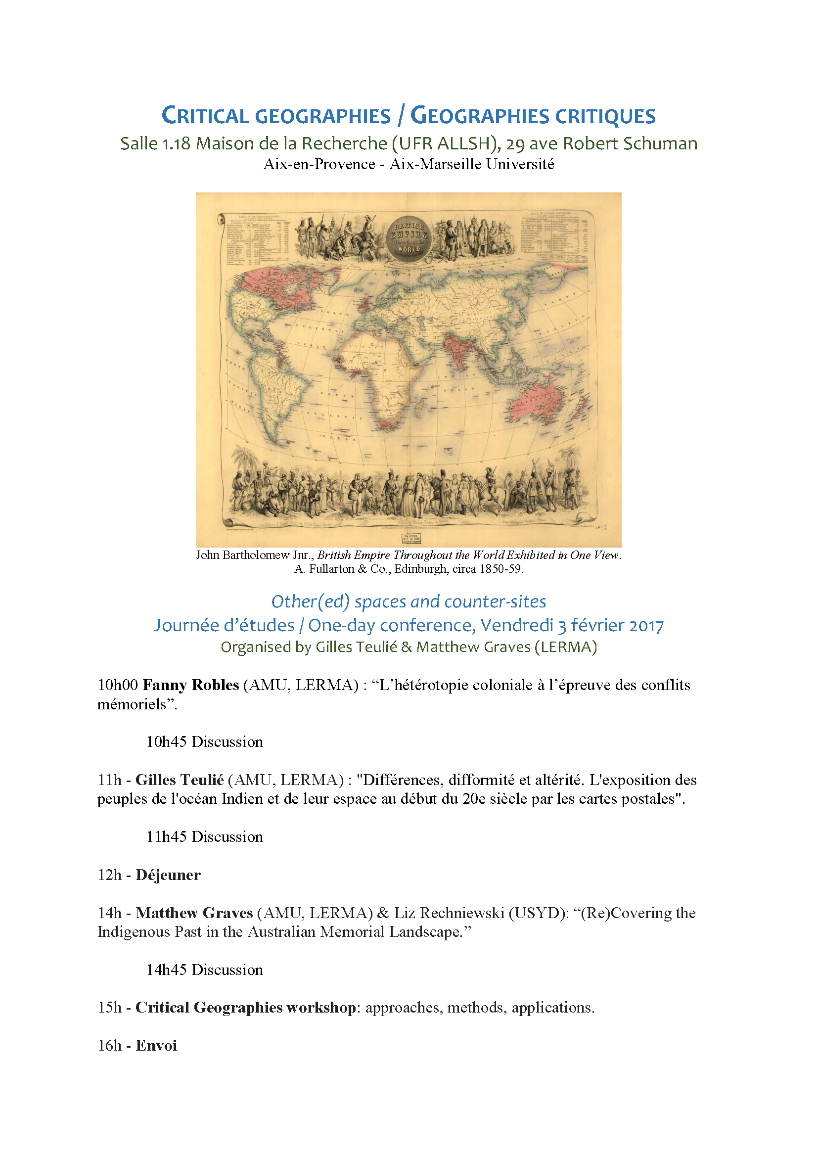 Vendredi 27 janvier 2017, 9h15-17h00. Faculté ALLSH, 29 av. R. Schuman, Aix-en-Provence. Pôle multimédia T1, salle de colloque 2.