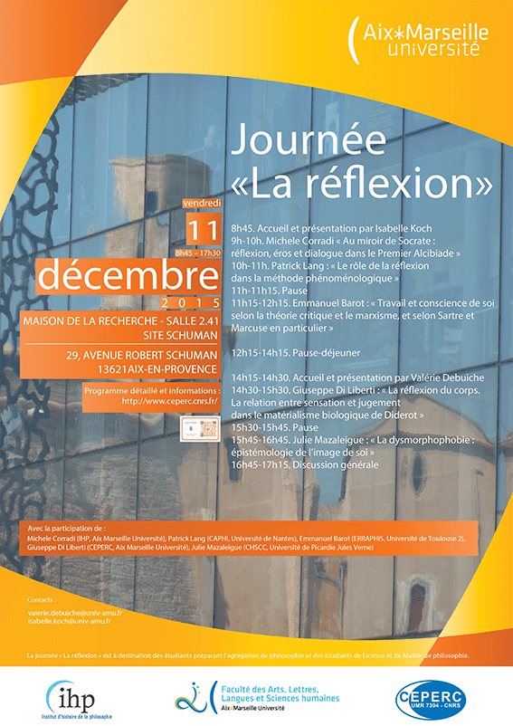 Lundi 15 juin 2015, 14h-17h Maison de la recherche / Salle 2.44 CAER – Centre Aixois d’Etudes Romanes – Journée d’étude Axe 1. Langages et mots du politique. 11 - La parole engagée - Michel Jonin (AMU/CAER), Construire la paix civile ? Le discours sur les minorités juridiques religieuses dans les Siete Partidas (XIIIs.) - […]