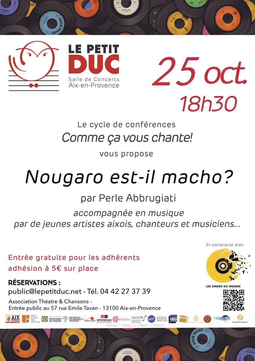 Conférence de Perle Abbrugiati, donnée au Petit Duc jeudi 25 octobre à 18h30 |