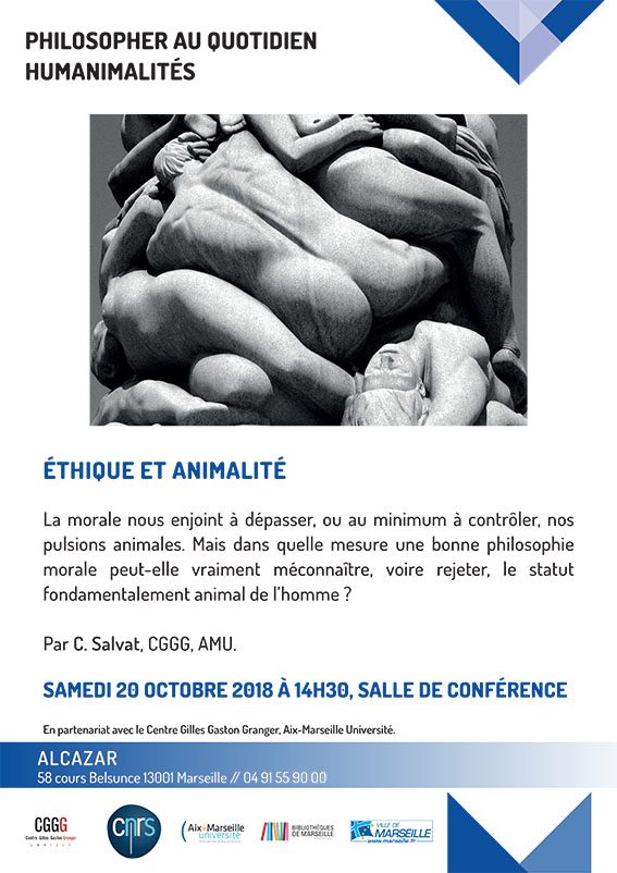 Dans le cycle « Philosopher au quotidien - Humanimalités », Christophe Salvat, fera une conférence à l’Alcazar sur le sujet : "Éthique et animalité" |