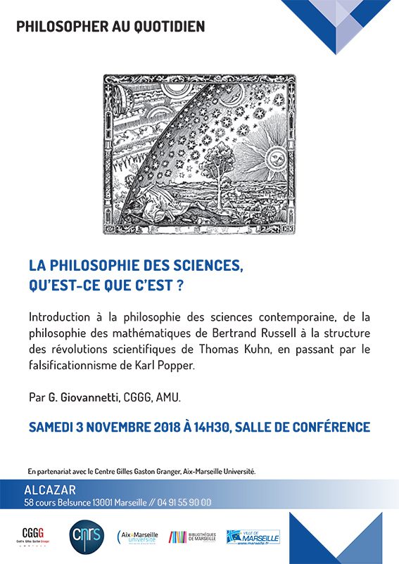 Gabriel Giovanetti, doctorant au Centre Granger, fera une conférence à l’Alcazar sur le sujet : La philosophie des sciences, qu’est-ce que c’est ? En savoir plus |