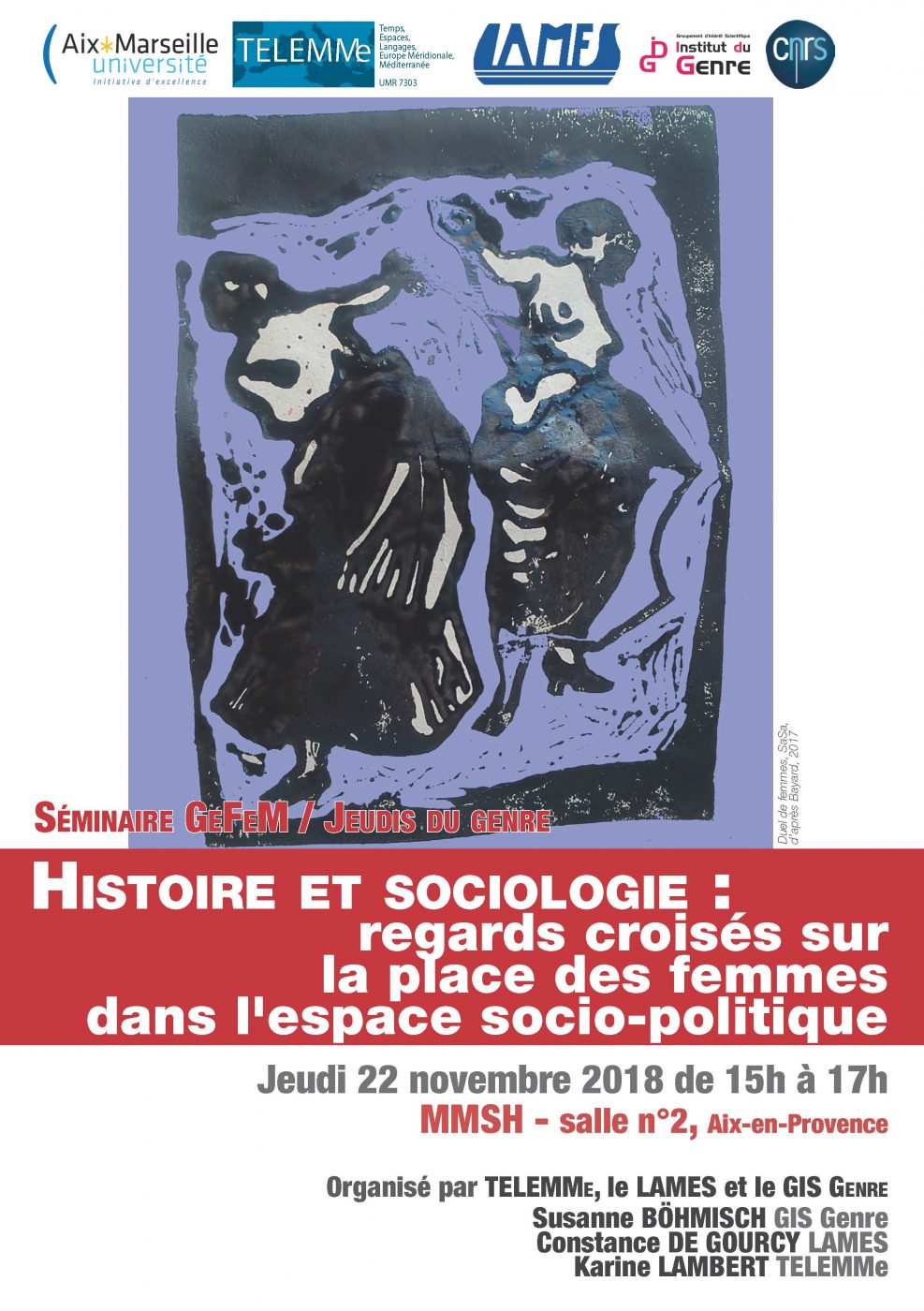 Titre de la séance. Histoire et sociologie : regards croisés sur la place des femmes dans l'espace socio-politique Martine LAPIED (TELEMMe-GeFeM Centre, Femmes, Méditerrannée) : L’engagement politique des femmes de l‘Ancien Régime à la Révolution. Les pratiques politiques féminines dans le sud-est de la France et leurs représentations. Eleni DEMETRIOU (LAMES Laboratoire méditerranéen de sociologie) […] |